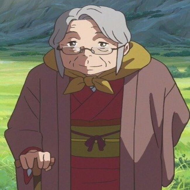 Miyamizu Hitoha is an elderly woman with a gentle face with many wrinkles, gray hair and glasses.